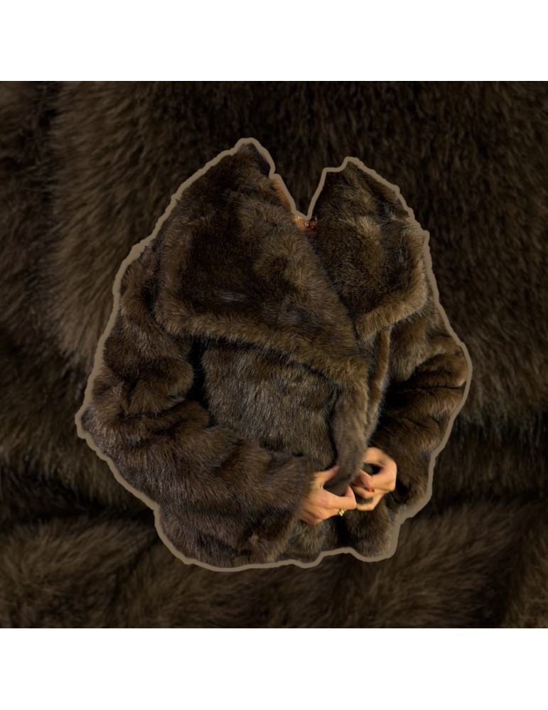 Fourrure à poil long avec poches ajusté à la taille. Deux rangée de bouton à pression pour un effet plus ou moins cintré. Taille unique